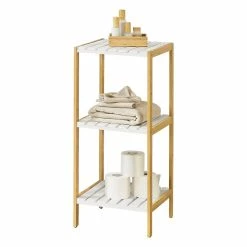 Grosses soldes ❤️ Étagère de rangement Balsfjord Bambou 33 x 34 x 80 cm Naturel Blanc [en.casa] 🛒
