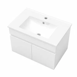 Tout neuf 🧨 AICA Sanitaire meuble blanc sous lavabo suspendu avec deux portes, vasque en céramique ⌛