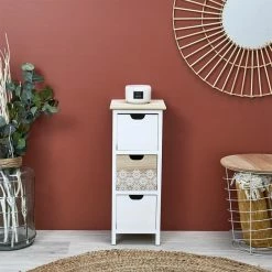 Grosses soldes 😀 The Home Deco Factory Chiffonnier 3 tiroirs Chic naturel et blanc turel clair 👏