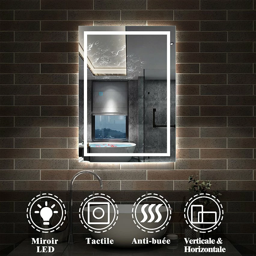 composé de lumière led intégrés, d’un interrupteur sur le miroir, pratique et simple, ce miroir lumineux vous apportera un confort d’utilisation, surtout dans les salle de bains à faible luminosité.