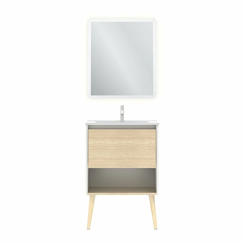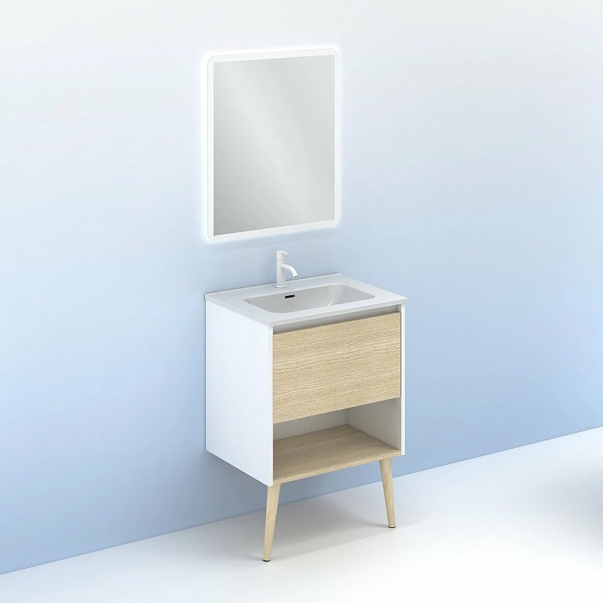 Top 10 🎉 Amizuva Ensemble de meuble, vasque et miroir NARA avec un tiroir et un niche H.56,5 x L.60 x P.46 , effet Blanco Mate/ Chêne sablé 🤩