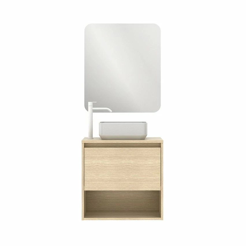 Promo ⭐ Amizuva Ensemble de meuble, vasque et miroir NIWA TOP avec un tiroir et un niche H.56,5 x L.60 x P.46 , effet Chêne sablé ✔️