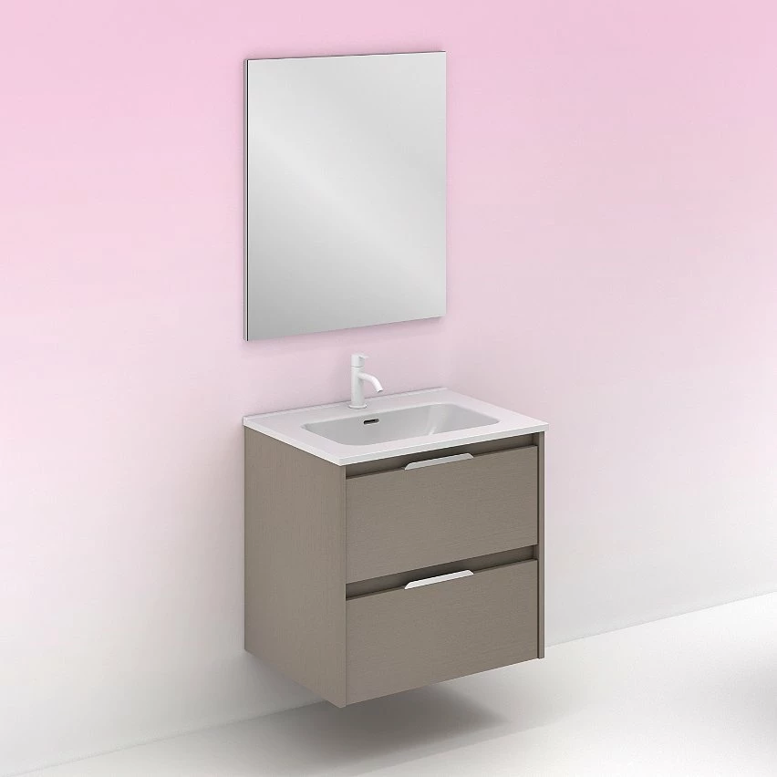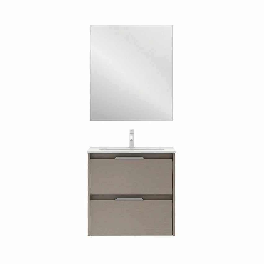 Vente flash 🎁 Amizuva Ensemble de meuble, vasque et miroir SUKI avec deux tiroirs H.56,5 x L.60 x P.46 , effet Fumé sablé ❤️