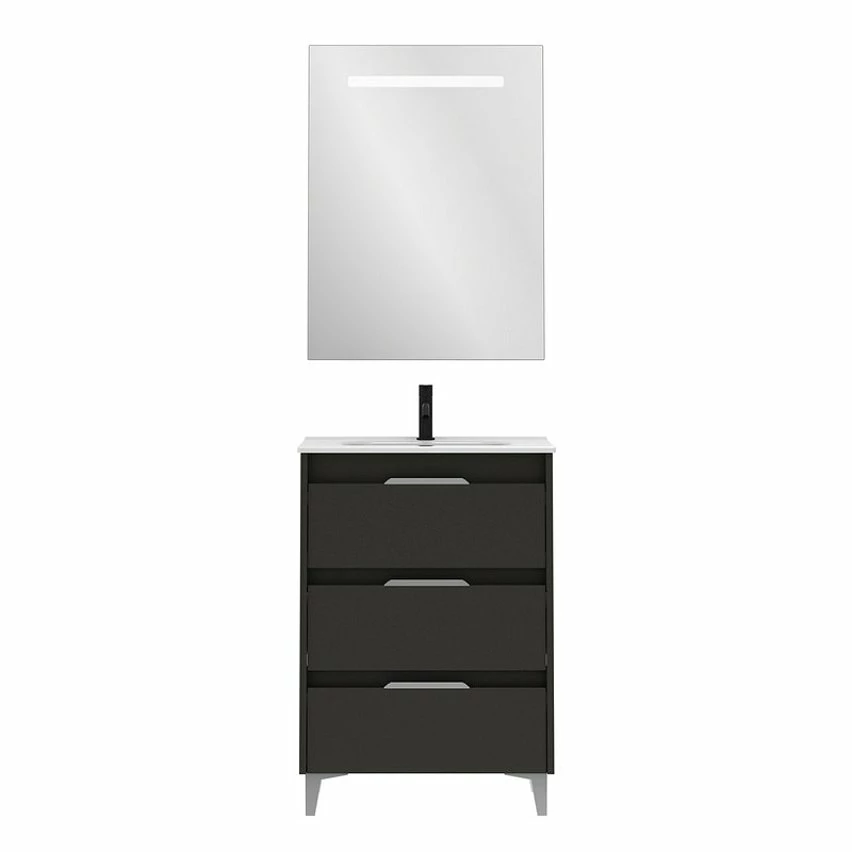 Le moins cher 👏 Amizuva Ensemble de meuble, vasque et miroir SUKI avec tris tiroirs H.74 x L.60 x P.46 , effet Anthracite brillant ⌛