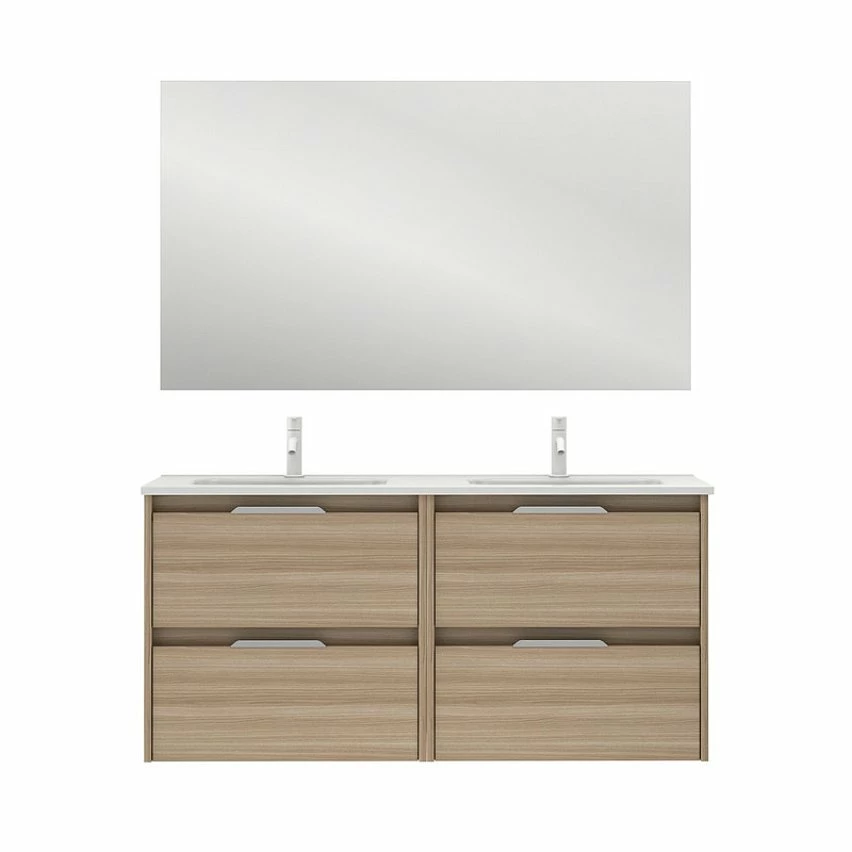 Remise 😀 Amizuva Meuble double vasque SUKI avec quatre tiroirs H.56,5 x L.120 x P.46 , effet noyer sablé | Il comprend la vasque en céramique 🔥