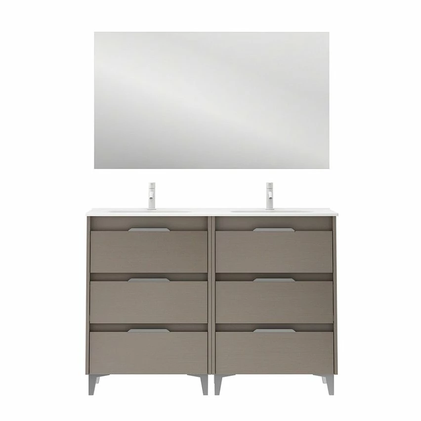 Meilleure vente ⭐ Amizuva Meuble double vasque SUKI avec six tiroirs H.74 x L.120 x P.46 , effet Fumé sablé | Il comprend la vasque en céramique 🤩