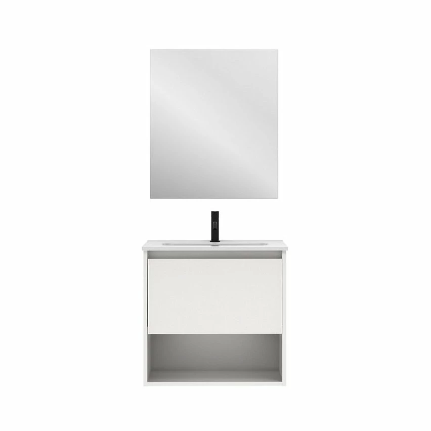 Bon marché 🔥 Amizuva Meuble simple vasque NIWA avec un tiroir et un niche H.56,5 x L.60 x P.46 , effet blanc brillant | Il comprend la vasque en céramique ✨