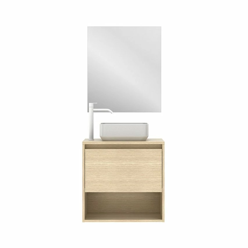 Le moins cher 🎁 Amizuva Meuble simple vasque NIWA TOP avec un tiroir et un niche H.56,5 x L.60 x P.46 , effet Chêne sablé | Il comprend la vasque en céramique 🥰