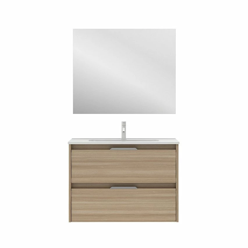 Sortie đ„ Amizuva Meuble simple vasque SUKI avec deux tiroirs H.56,5 x L.80 x P.46 , effet noyer sablĂ© | Il comprend la vasque en cĂ©ramique â