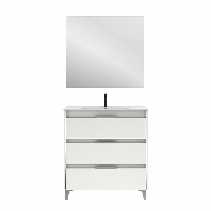 Meilleure affaire 💯 Amizuva Meuble simple vasque SUKI avec tris tiroirs H.74 x L.80 x P.46 , effet blanc brillant | Il comprend la vasque en céramique 🥰
