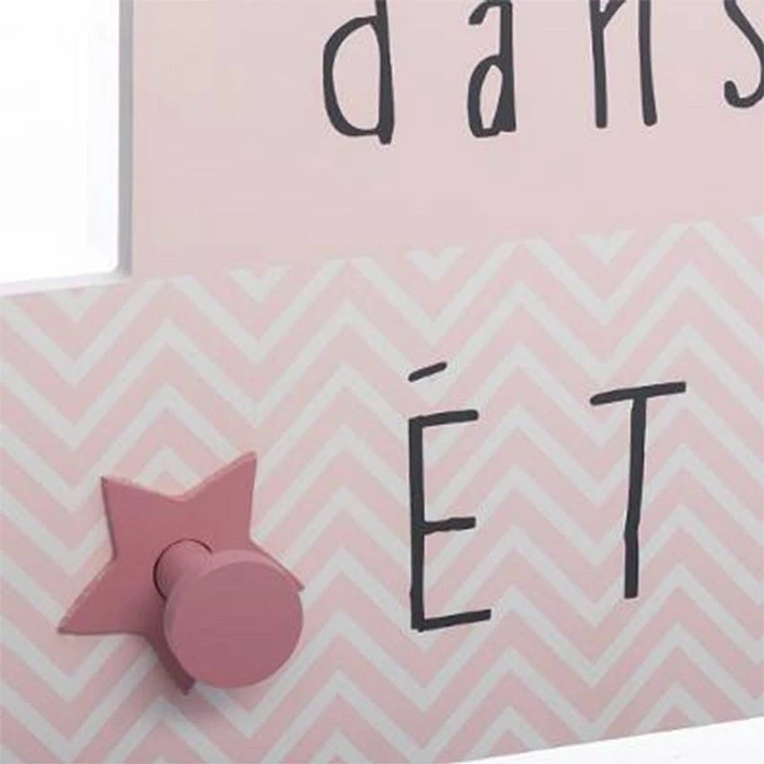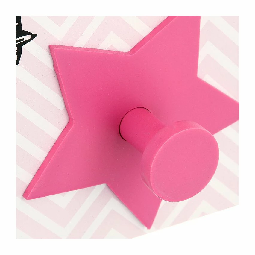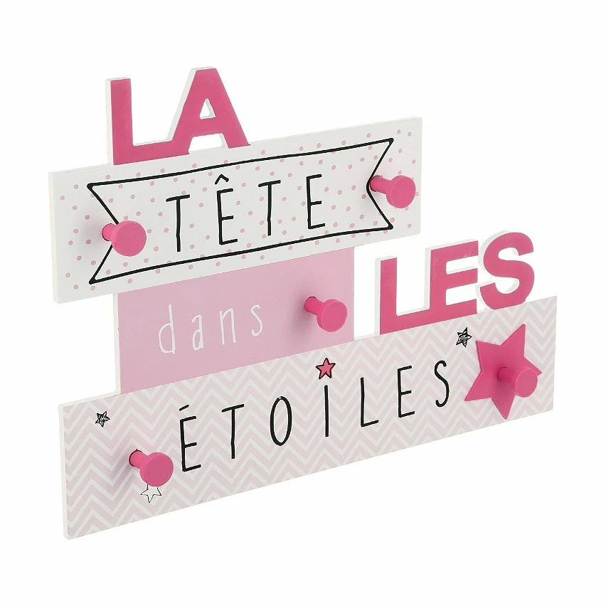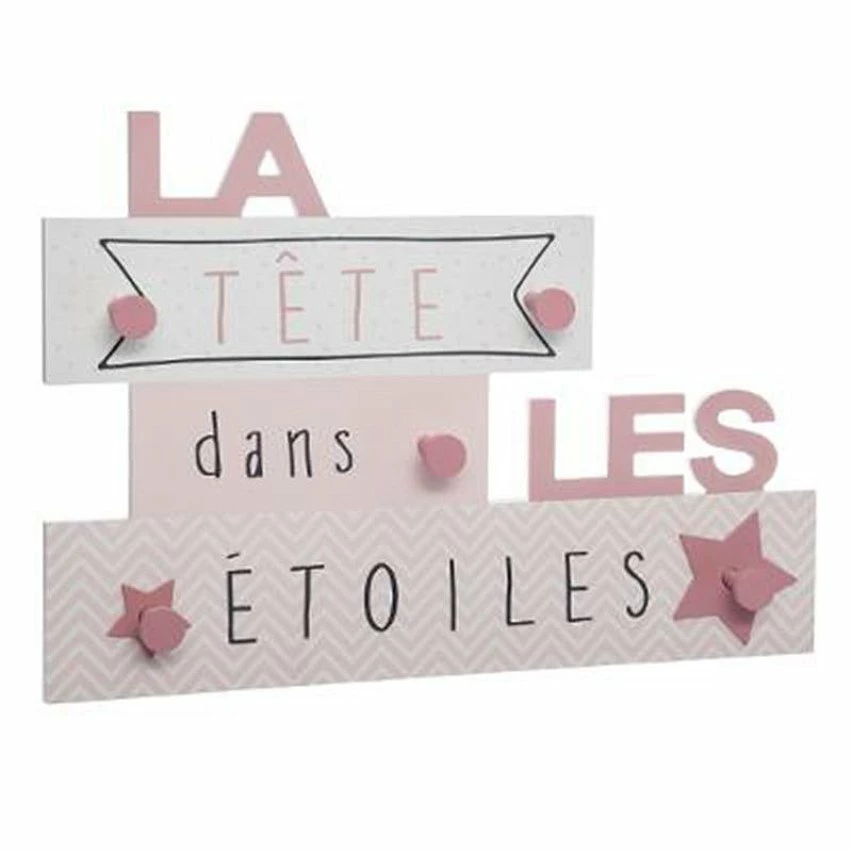 Patère Enfant La Tête dans les étoiles 5 crochets en Bois Rose L 48 x H 34 cm —