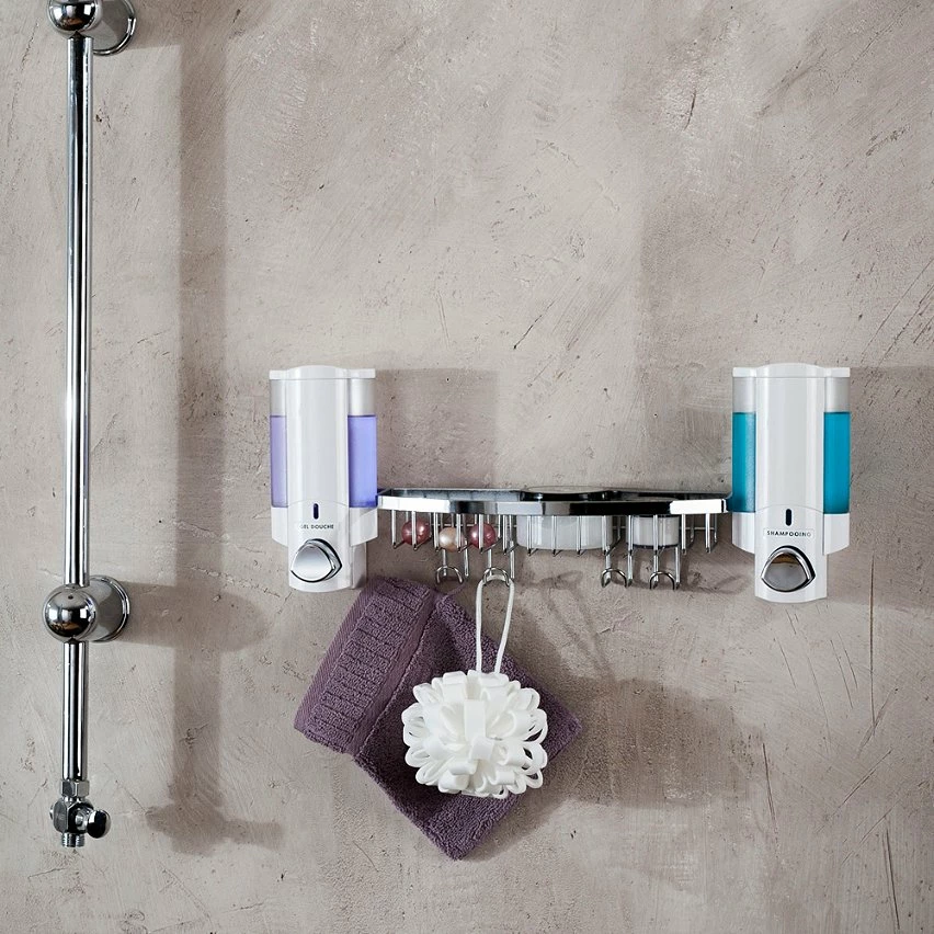 - Distributeur de savon/shampooing blanc à montage mural idéal pour les salles de bains, les cuisines, les douches et les espaces communs – se fixe au mur sans perçage ni vis