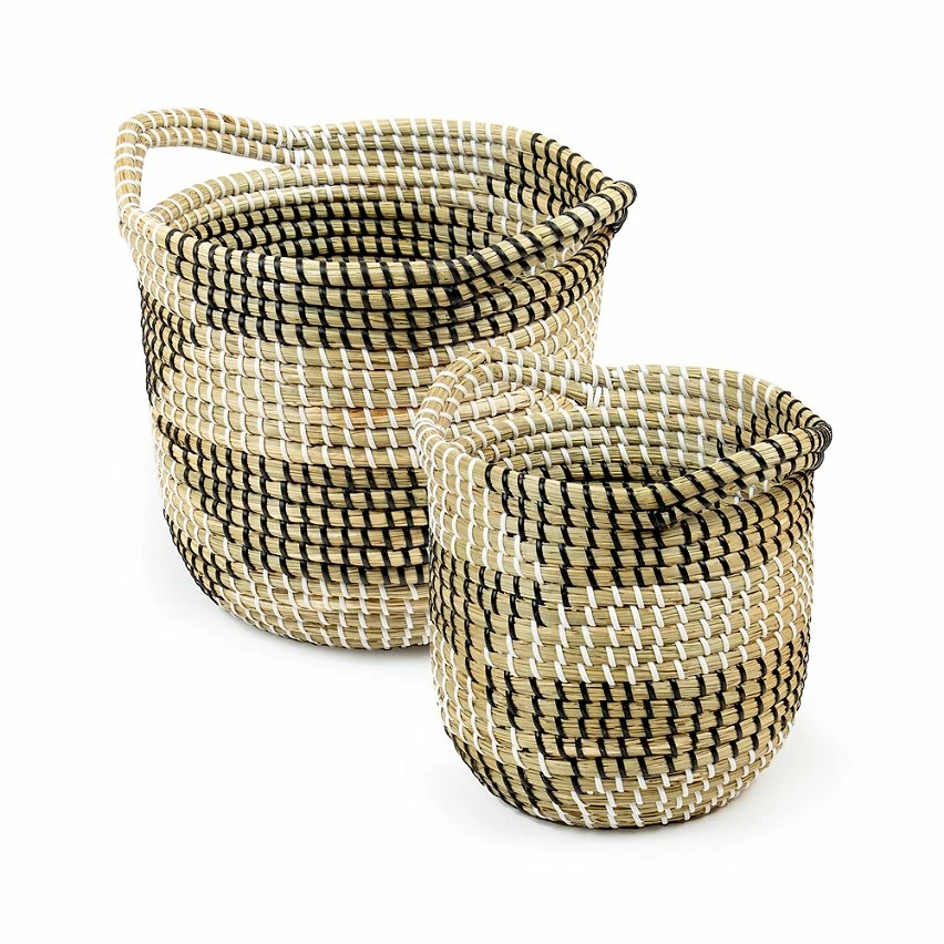 Si vous cherchez de jolis cache-pots pour vos bouquets de fleurs séchées ou vos plantes, les paniers Sonta sont la solution la plus déco qui soit. Réalisés à la main au Vietnam, ils sont en jonc de mer naturel, simplement soulignés par des fils plastifiés blancs et noirs qui dessinent des motifs géométriques. Leur diamètre et leur profondeur s’adaptent parfaitement aux végétaux (pensez à garnir de plastique le fond et les parois en cas d’arrosage) mais vous pourrez bien sûr les utiliser comme paniers de rangement pour vos accessoires dans le dressing ou comme vide-poches près de la porte d’entrée. Plus vous les multiplierez, plus l’impact visuel sera réussi.