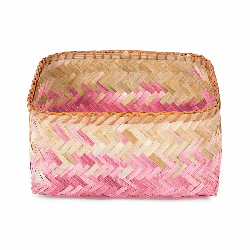 - Panier de rangement en bambou naturel et rose à effet tie and dye