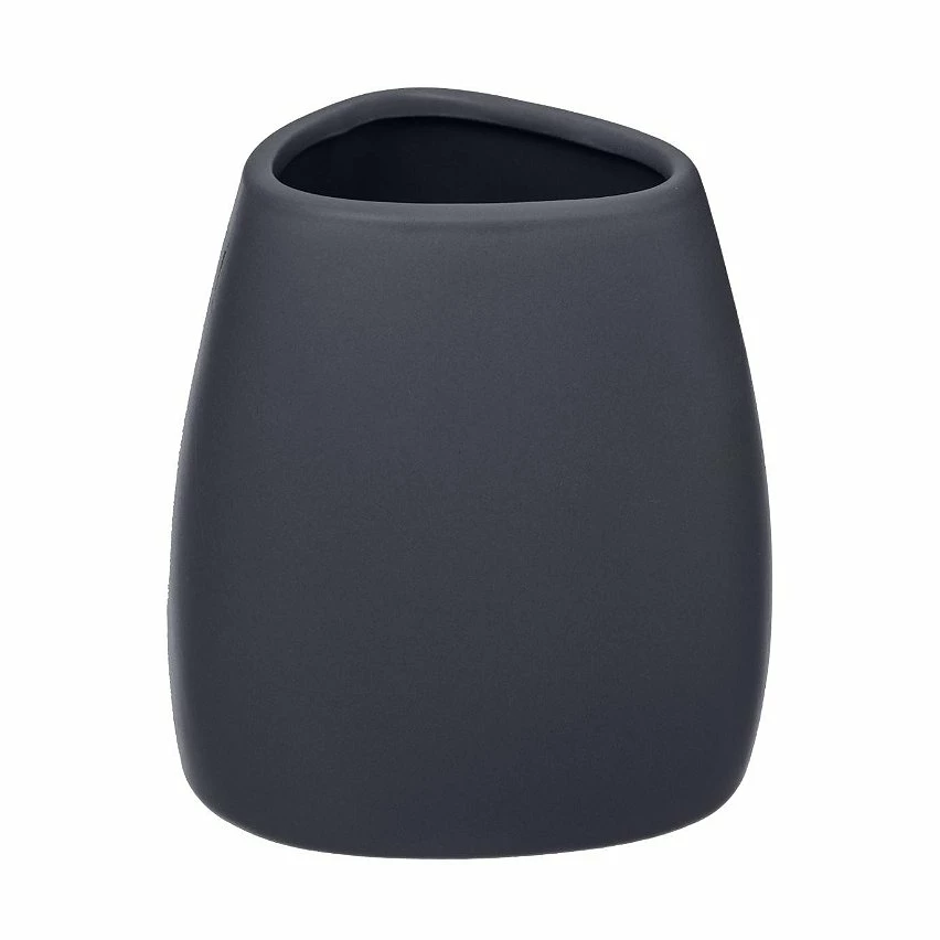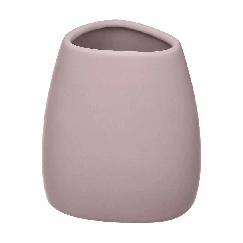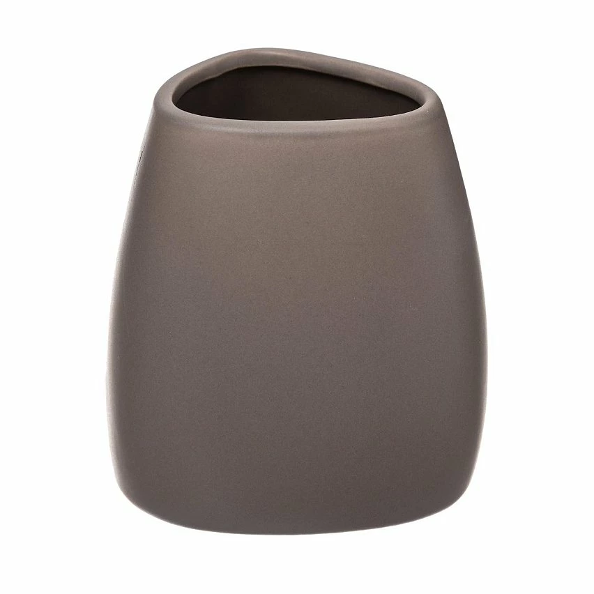 Gobelet et porte brosse à dents en céramique Silk Mat Taupe —