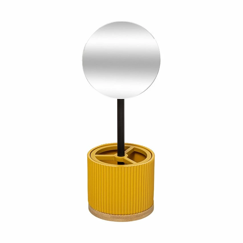Miroir grossissant x3 avec Pot Organiseur à Maquillage Jaune Moutarde —