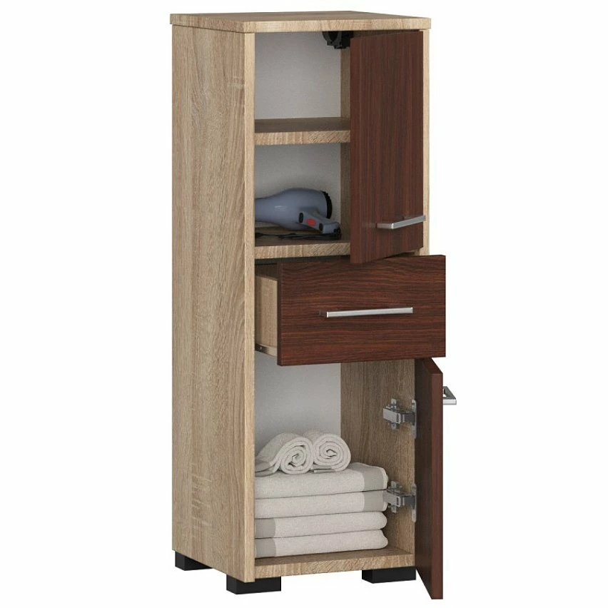 Dans chaque salle de bain, il y a des choses qui ont besoin de leur rangement. Simple et élégante à la fois, la colonne ASTORIA apportera une touche moderne dans votre salle de bain. La structure est fabriquée en panneaux de particules mélaminés de haute qualité. Le meuble est composé de 2 portes comprenant chacune 1 niche de rangement et 1 tiroir, POINTS FORTS: Moderne et fonctionnelle, 2 portes + 1 tiroir, Solution parfaite pour l’économie et l’optimisation de l’espace, Double finition: aspect bois Wengé / aspect bois Sonoma, Fabriqué en Europe, CARACTÉRISTIQUES TECHNIQUES: Profondeur – 30cm, Longueur – 30cm, Hauteur – 85cm, Structure en panneaux bois 16mm, Meuble à monter soi-même à l’aide de la notice fournie, Photos des articles le plus fidèle possible, mais restant non contractuelles, les nuances de couleur et le rendu des matières présentés à l’écran pouvant être différents de la réalité