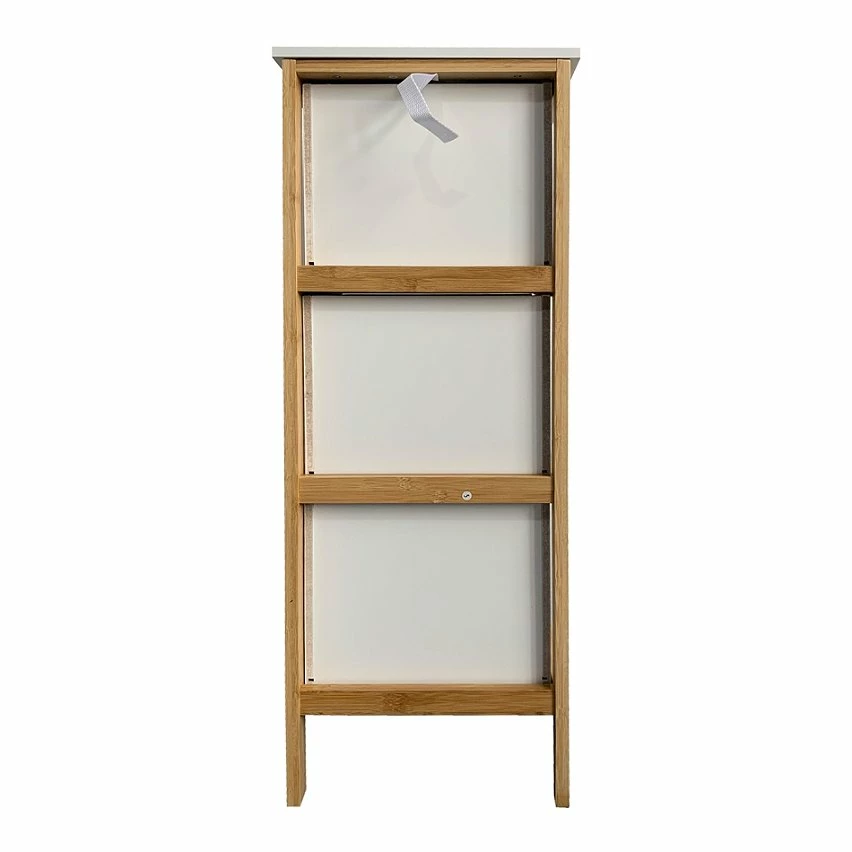 – CABINE BLANCHE : La commode est composée de 3 tiroirs blancs encadrés par un cadre en bambou. Une commode minimaliste que vous pouvez utiliser dans différentes pièces en fonction de vos besoins. Elle est parfaite comme commode de chambre à coucher pour organiser les stylos et les petits jouets des enfants. Dans la chambre à coucher, comme table de chevet pour placer les réveils et les lampes et garder les pilules et les téléphones portables à portée de main. Dans le salon pour ranger les télécommandes et les chargeurs