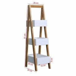 – SPÉCIFICATIONS : Dimensions : H 81 x L 21 x P 30 cm – Dimensions des étagères : H 8 x L 30 x P 18 cm – Distance entre les étagères : H 15 cm – Couleur : Blanc, Marron – A monter. Instructions incluses – Matériau : MDF, Bambou – Code RE6712