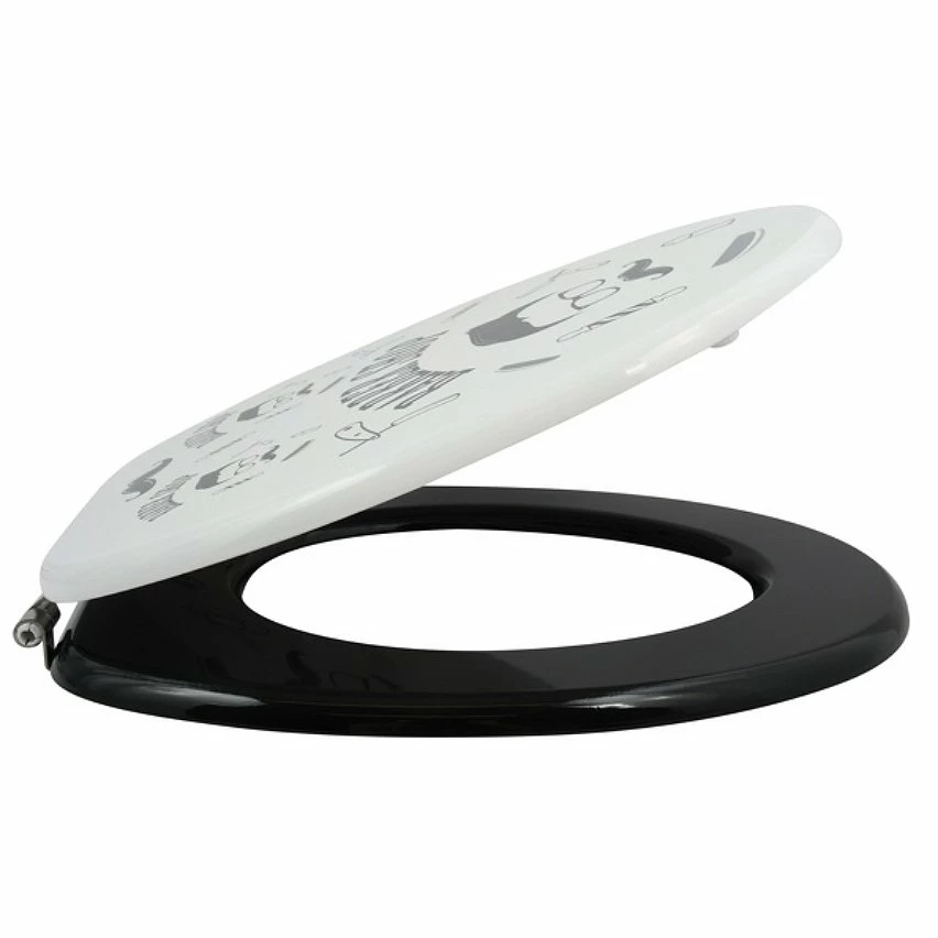Acheter 🧨 MSV Abattant WC MDF BARBER Gris & Noir- Charnières Inox ⭐