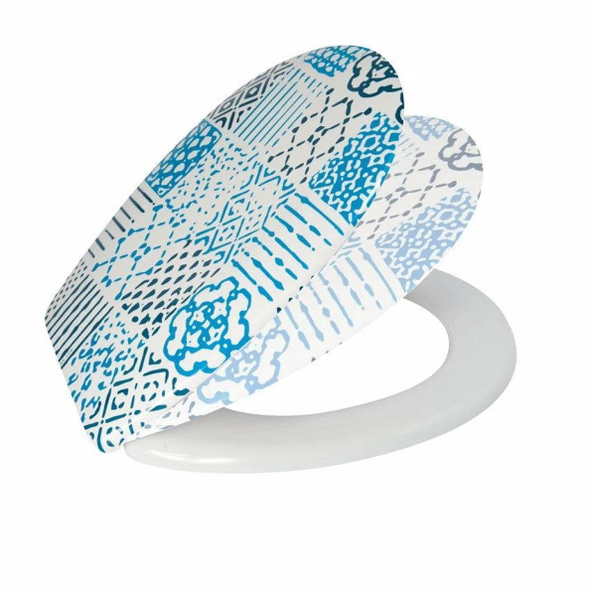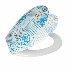 Budget ✨ MSV Abattant WC Thermo Dur ALENTEJO Bleu & Blanc – Charnières PS 🎉