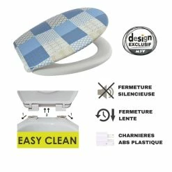 Abattant Wc de la marque MSV. HAUTE QUALITÉ: En matière Thermo-Dur avec charnières en plastique. La finition de haute qualité du siège Wc garantit une grande stabilité et une longue durée de vie. SYSTÈME EASY CLEAN: Son systeme Easy clip facilite considérablement le nettoyage du siège, il suffit de clipser pour le fixer, déclipser pour nettoyer et le tour et joué ! MÉCANISME FERMETURE LENTE: Avec cet abattant, finit les bruits dérangeants et les claquements. L’abattant Wc est doté d’un mécanisme de frein de chute en douceur intégré pour une fermeture silencieuse du couvercle. Le dessous est muni de crampons pour éviter les glissades ou les bruits forts. TENDANCE: Donnez à votre salle de bain non seulement un confort parfait, mais aussi une ambiance tendance. INFORMATION PRODUIT: Dimensions: 45,5x37x5cm Couleur: Bleu Matière: Thermo Dur