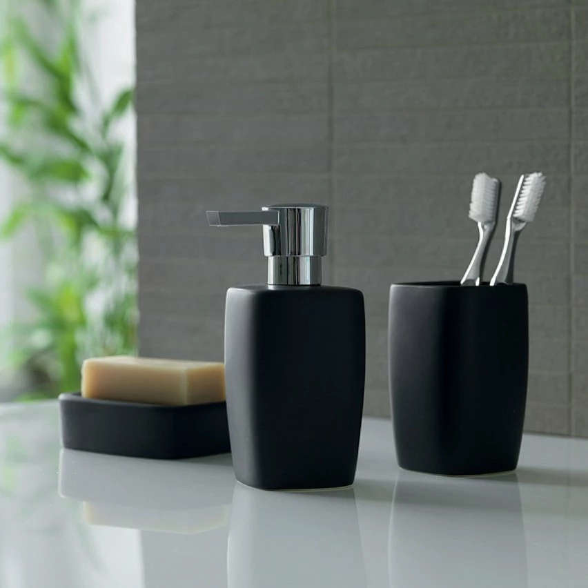 De gros ❤️ Spirella Distributeur de savon Céramique RETRO Noir 🎉