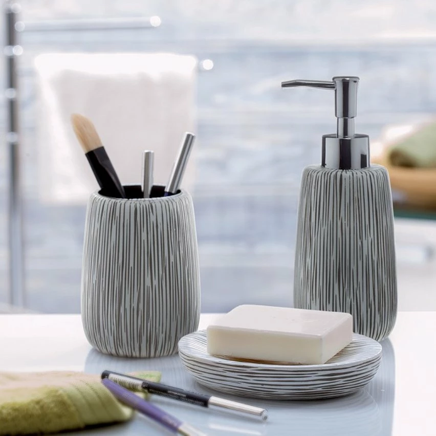 Tout neuf 😍 Spirella Gobelet Polyrésine HOLLIS Gris & Blanc 🎁