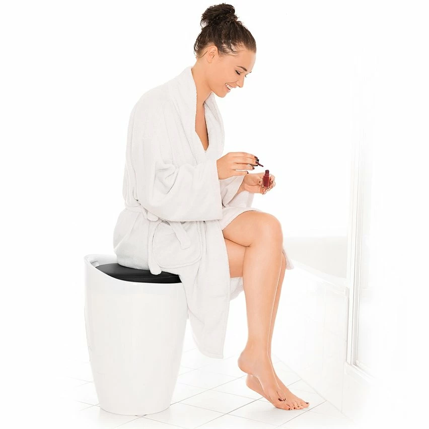 Tabouret Coffre de Rangement 18 Litres Siège Multifonction Ø 36 cm x 51 cm TECTAKE. Notre tabouret coffre de rangement en plastique ABS est stable et parfaitement polyvalent. Véritable objet passe partout, il trouvera sans nul doute possible sa place dans une salle de bain, une chambre à coucher, un salon, etc. Le coussin d’assise très confortable est amovible, il est composé de matière synthétique de haute qualité. L’espace de rangement dissimulé sous l’assise vous permettra de ranger tous vos objets personnels en fonction de l’endroit où vous le disposerez. Vous bénéficierez ainsi d’un espace de rangement supplémentaire dans chaque pièce de votre maison. Qu’il soit utilisé comme panière à linge dans votre salle de bains ou comme boîte à rangement pour les jouets dans une chambre d’enfant, il vous permettra également de disposer d’un endroit où s’asseoir à tout moment. De par sa légèreté et sa conception (poignée intégrée) vous pouvez le disposer où bon vous semble rapidement. Le tabouret coffre de rangement robuste est facilement nettoyable.