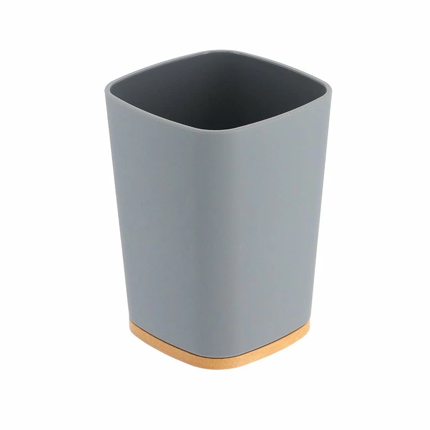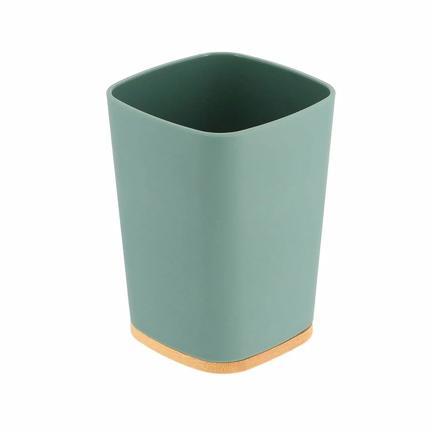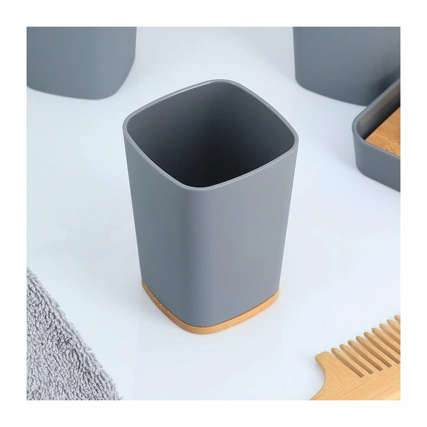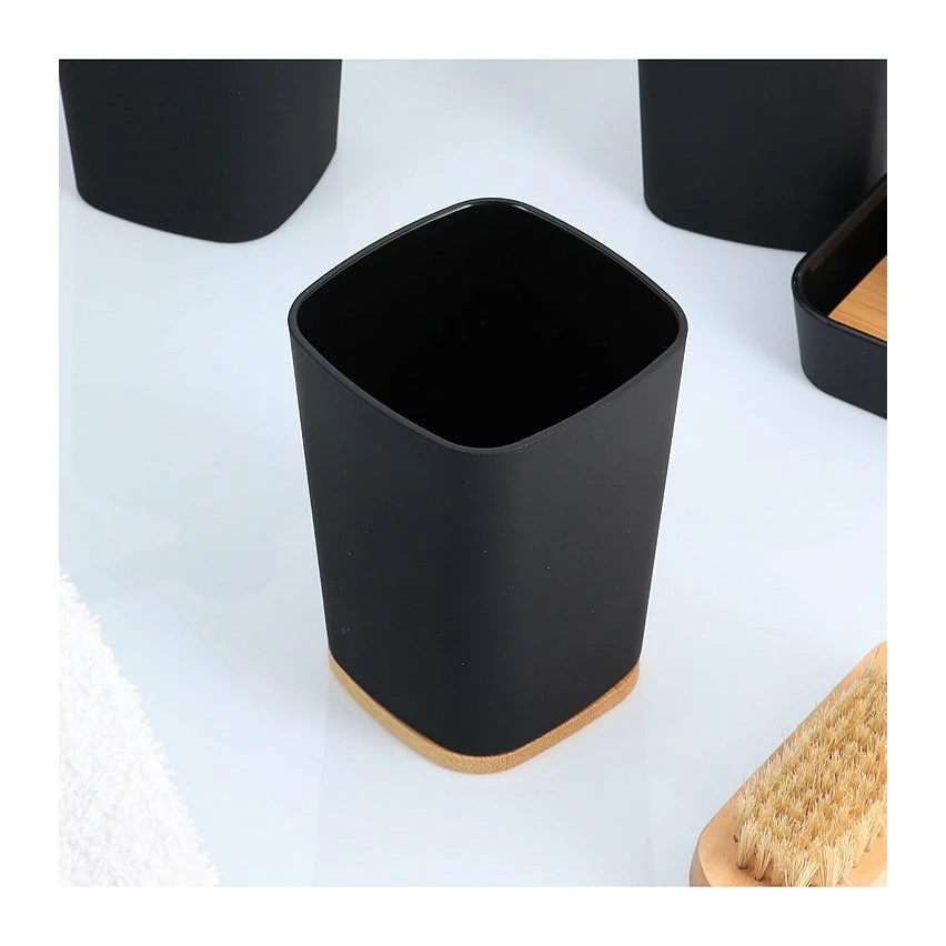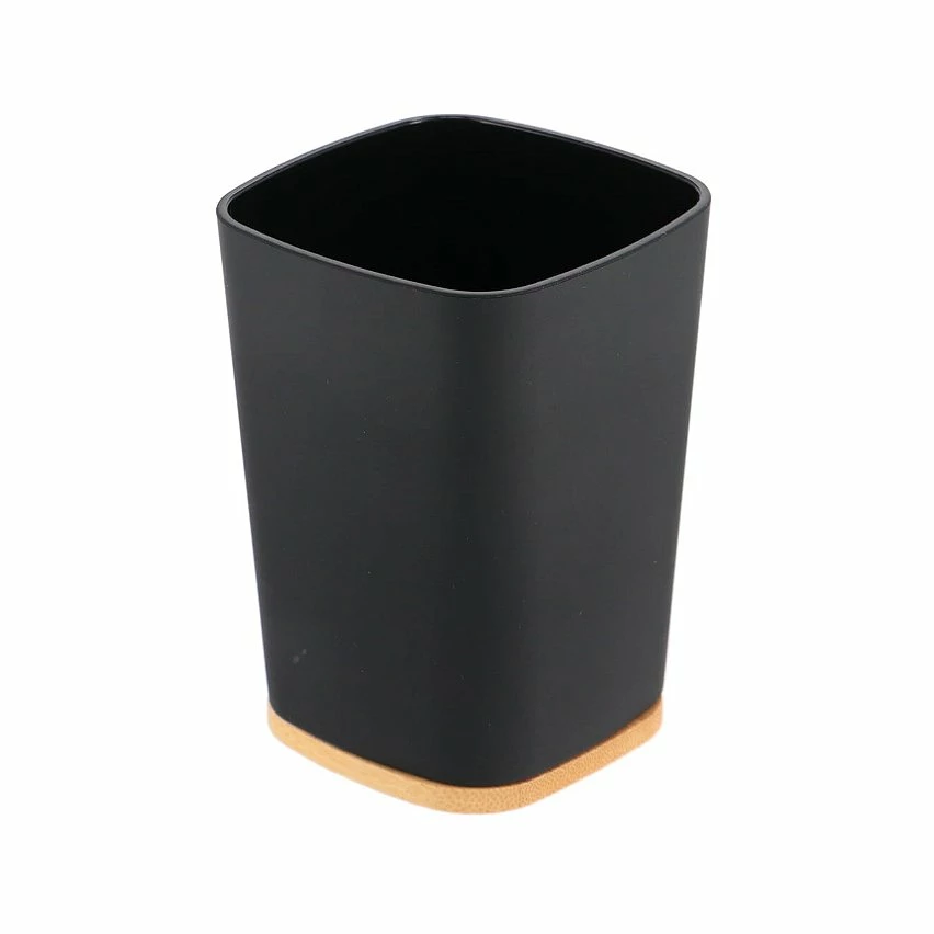 Gobelet et Porte brosse à dents Noir avec base Bambou —