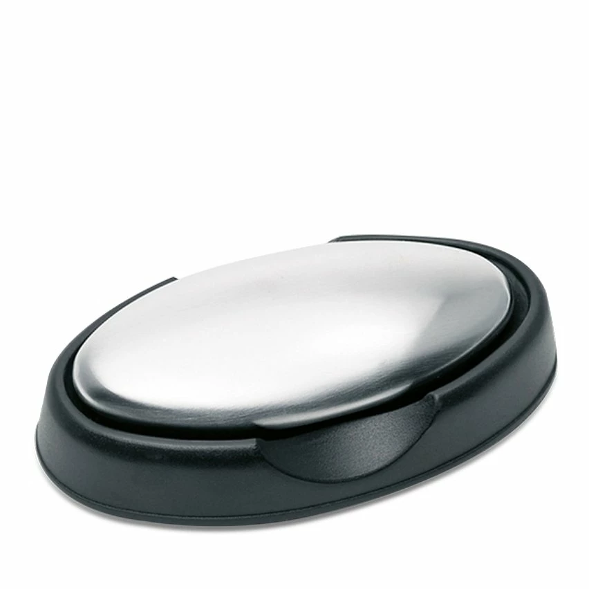 On vous propose ici ce savon en métal inoxydable qui non-seulement élimine les odeurs persistantes mais qui a un design futuriste!* Dimensions : 8,6 x 4,8 cm