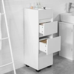 Avec cette armoire de salle de bain, vous pouvez créer un espace de rangement supplémentaire pour votre salle de bain avec un aspect remarquable et bien rangé. Les lignes épurées et le design élégant s’intègrent parfaitement à votre salle de bains.